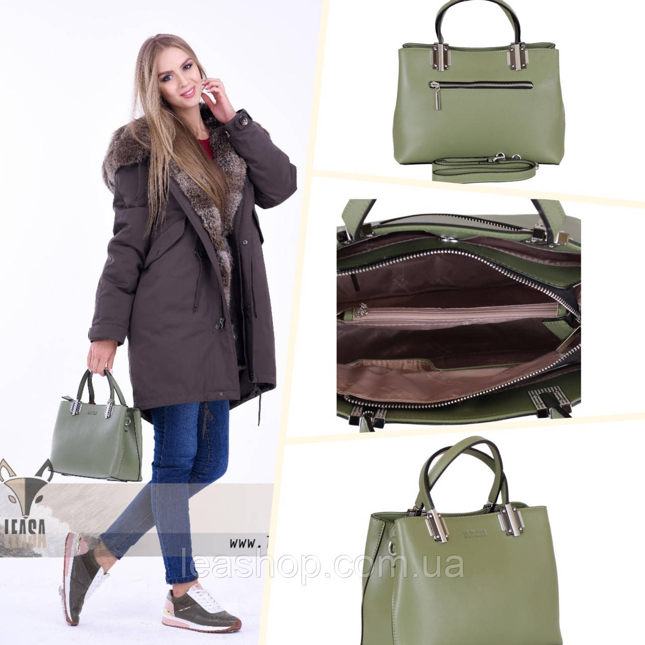 Жіноча шкіряна сумочка кольору хакі | АКЦІЯ