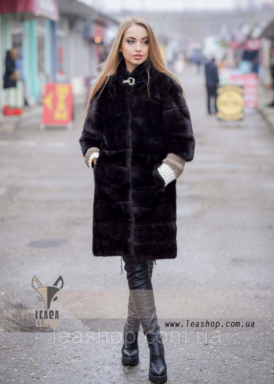 Жіноча шуба з роскошнейшего натуральної хутра норки виглядає на всі 100% крутості і краси. А її щільний колір СТК ( стандартний темно-коричневий ) і фактура натурального хутра норки створюють гармонійний ансамбль багатства.