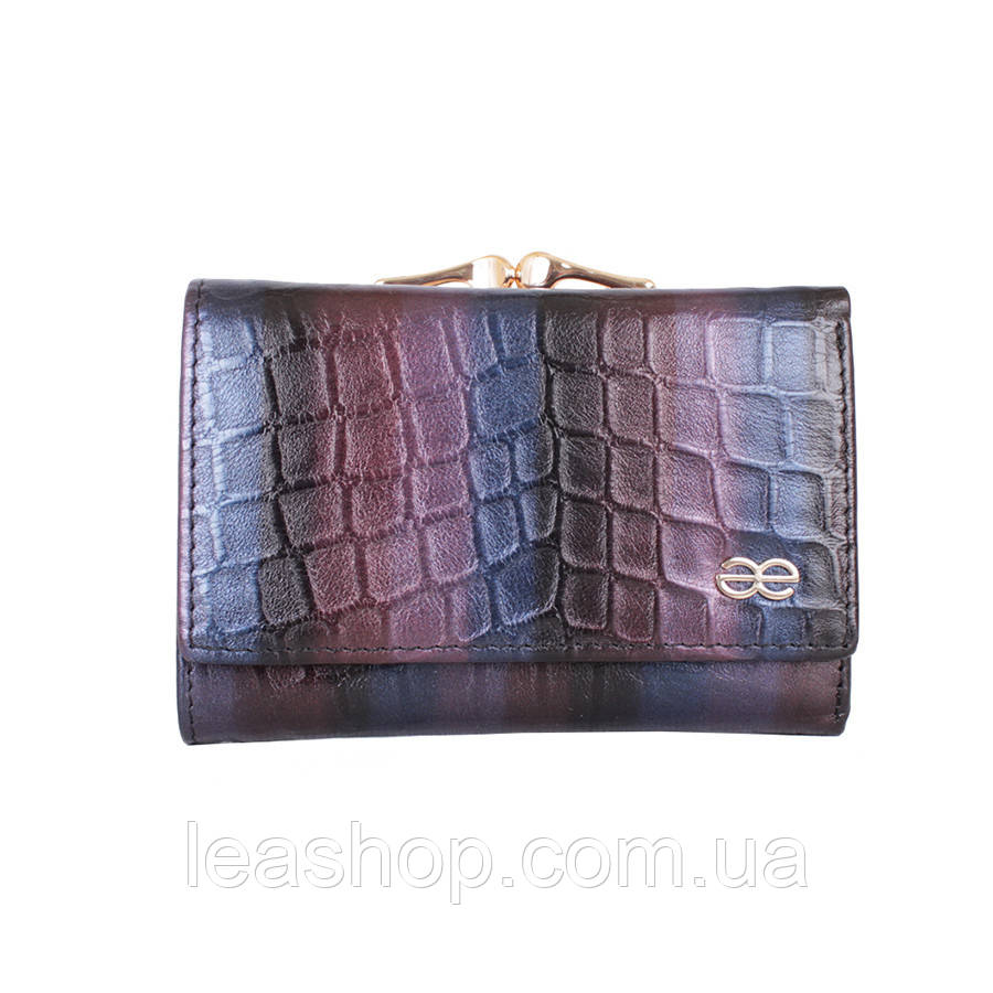 Невеликий гаманець з якісної натуральної шкіри. Поверхня виконана з імітацією шкіри рептилії. Всередині 6 кишень для пластикових карт, а також відділення для купюр і монет.
