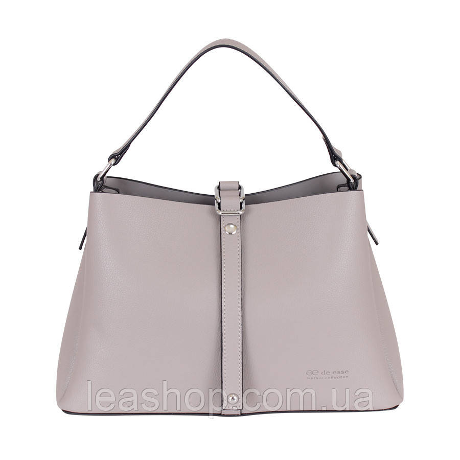 Невелика шкіряна сумочка. Всередині незнімний кишеня на блискавці. Сумка закривається за допомогою ремінця на магніті, який також служить декором. В комплекті знімний шкіряний брелок і нерегульований ремінь. Всередині кишеня на блискавці і дві кишені для мобільного телефону.