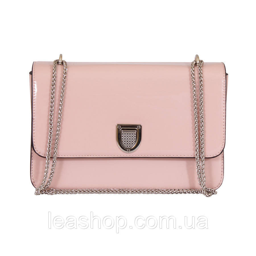 Стильна лакована сумочка-клатч, виконана в трендовому кольорі нового сезону. Ручка-ланцюжок носиться як дві корткие або одна довга ручка. Всередині один кишеню на блискавці.