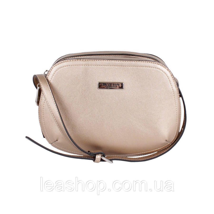 Стильна сумочка на два відділення, закриваються окремими блискавками. Плечовий ремінь регулиется. З лицьового боку модель прикрашена фірмовим логотипом. Всередині кишеня на блискавці і кишеню для мобільного телефону. Між відділеннями є кишеня на магніті. Зовні із зворотного боку кишеня на блискавці.